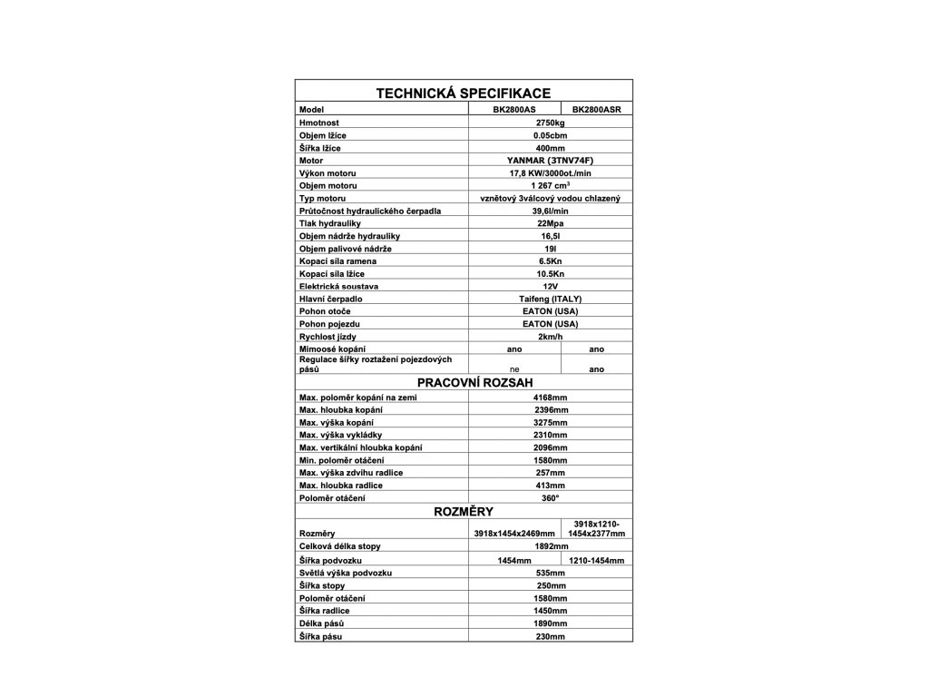Minibager BG2800.01 2,8t lyžica 200, 500, 1000, rýchloupinák